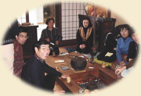 ![]() 1Fの囲炉裏の間 ご主人を囲んで楽しい語らいの場となっています。 |