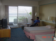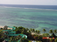 | 去る2000年11月8日〜11日に俺たちはサイパン旅行にいきました。 宿泊所はホテル日航サイパンで、まあ一応サイパンでは一流と言われているところです。ご覧のように、部屋は全てオーシャンビューで素晴らしい景色でしょ。部屋もゆったり。マウンテン側はご覧のようなショッピングセンターがあります。 思えば、ほんの3時間前は早朝の日本でちょっと寒かったのに、ここは30度の真夏の世界です。大阪からだと新幹線で3時間で東京ですので、同じ3時間でこの違いは何なんですかね。 明日から、エピソードを中心に報告しますので毎日アクセスして下さいね。 |