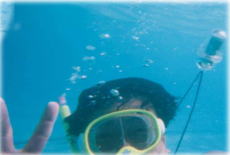 | 綺麗な海中は本当に最高です。海なのになんでこんなに透明度が高くて遠くまで良く見えるんだ。 なんで海中なのに写真撮影ができるんだ。 3年前のハワイ島のシュノーケリング以来、海中の世界にはまっている俺たちはシュノーケリングは得意です。 日本では、シッタカ、サザエ等を採っていますが、ここは貝類は何もいませんでした。残念。 F郷氏も以外に海が好きらしく俺たち以上に潜っていたな。 今思えば、さんご礁が途切れる沖まで行くべきであったと後悔しています。そこまで行くと恐らく水温も低いと思われますが、どのくらい低いか(泳いでいた所は25度くらいあったんじゃないかな。)非常に気になる。 珊瑚もテーブル珊瑚があるんじゃないか、魚も種類が違うんじゃないかなど等、本当に失敗しました。 ところで、写真中、右に写っている透明なカプセルは何だかわかりますか。そうです、海での貴重品入れです。 貴重品と言ってもお金、お金といってもお札です。 ですから、このカプセルに海水が入るとお札がビタビタになりちょっとまずい事になります。 関西空港の出発前ロビーで350円のコーヒーを飲んでいる時、F郷氏よりこのカプセルを買った方が良い旨のアドバイスがあり、素直な俺たちは1050円で購入しました。それがこのカプセルです。さすがJapan製。かなり潜っていたのですが水漏れなしでした。 それに引き換えF郷氏。日航サイパン裏のショッピングゾーンでこのカプセルを発見。 確か5ドルくらいだったか、日本の半額なので喜んで即購入。早速、プールで使用し問題なかったため、このマニャガハ島で使用。 ところが、一泳ぎしてビックリ。お札がびちゃびちゃ。カプセルにお札を入れる意味なし、海パンのポケットで十分状態でした。 そう言えば、マニャガハ島へ行く船の待合室で、M村氏、目ざとくこのカプセルモドキを発見。タバコを入れるのにピッタリの大きさであり、なんと3ドル50セント。喜び勇んで即購入。早速タバコを入れ一泳ぎ。一服しようとカプセルモドキを開けてビックり。タバコの浅漬けができとりました。 M村氏は笑ってこの事態を許してました。 そしてMr.クレームと自他ともに認めるF郷氏も買った店にクレームを入れるそぶりもない。 俺たちは、もちろん水漏れがなかったので大満足のみならず、安物買いの彼らに対し優越感さえもちました。 このお話は、なんでもないアホな話と見逃してはいけない。 そこには、購買者の物の価格に関する価値判断と環境の関係で考察すべき点があります。 何故、俺たちは「空港で」カプセルを購入したか。 何故、F郷氏は買うつもりがなかったカプセルを即しかも喜んで購入したか。 何故、M村氏は、タバコを入れるためにカプセルを3ドル50セントだしてかつ喜び勇んで購入したか。 何故、F郷氏、M村氏とも使い物にならない商品をつかまされてクレームを店にいれなかったか。 大阪では、500円の弁当に金糸玉子が入っていないという事で弁当屋にクレームを入れ代金の返済をさせるF郷氏がなぜ....。 この件に関しては、別途考察のページを設けて解説しますので、お楽しみに。(営業に役立つデー) ということで、すこし理屈っぽくなりましたがサイパン旅行は楽しく無事に終了したのでした。 |
