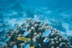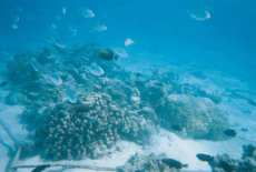 | F郷氏からやっと海中写真をゲットしました。F郷さんご協力有難うございます。 珊瑚という生物はテレビではかなり見たことはありますが、本物を見たのは、俺たちは初めてでした。 写真の珊瑚はサボテンちっくなやつで、この手の珊瑚が一番多くいました。変わったやつとしては、丸い大きな石をびっしり覆ったやつもおりました。残念なのは、皿やテーブルの形のテーブル珊瑚がいなかったことですね。 写真のあたりは恐らく水深は1m50cmくらいの所でしょう。島の周りはかなり遠浅で、100mくらい行ってやっと背が立たなくなるくらいです。 グアム・サイパンの海で有名なナマコですが、こいつらも俺たちが想像していたナマコとは大違いでした。素足で踏んでみて良くわかったのですが、あれはゴムの作り物ですな。グアムはいっぱいいるかもしれませんが、マニャガハ島にいるくらいの数ならば許容範囲だと思います。退治するまでもありません。 明日は、最終回です。F郷氏よりもうちょっと海中写真を取り寄せてフイナーレを飾りたいと思います。 |