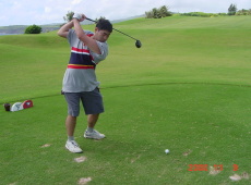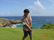 ・・・(ここであまり突っ込まないで下さいね。) KingFisher Golf Linksはご覧のように海岸ぺりにつくられた大変景色の良いコースでした。リンクスですから、風との戦いが熾烈です。何せ表示ヤードが120ヤードのショートホールで俺たちのパーテイは皆8番アイアンを使用して皆ショートして海ポチャだったんだぜ。後でグリーンに行ってその物凄いアゲインストにそりゃま驚きましたわ。ほんま。 |