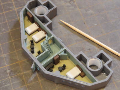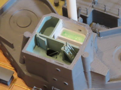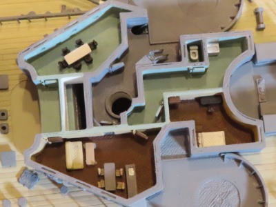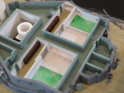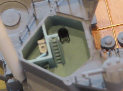 床の材質については諸説あって、前の方はリノニウムで後ろの方は鋼板というのもあるけど、私は前方部分が木材、後方がリノニウムの説にしたがって塗装。