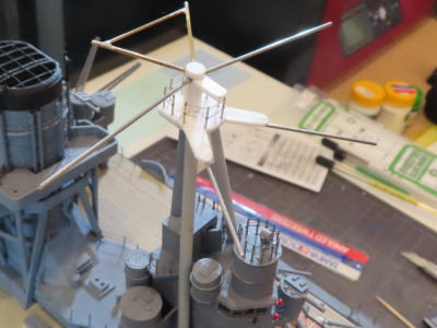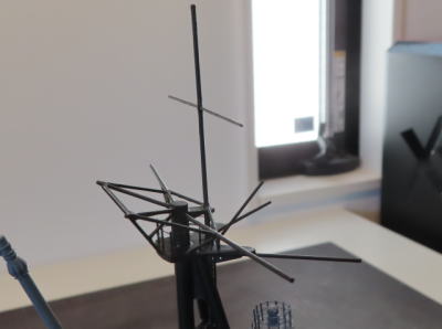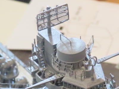 2号1型電探は真鍮のハンダ付けで形状を作成して模型用の金網を取りつけて作成。